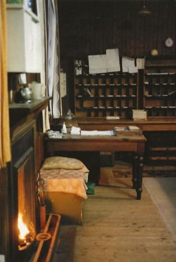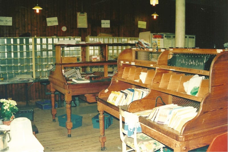 The old Post Office building in Ardgay was reputedly one of the best examples of Edwardian sorting office in the UK The wooden frames were stamped “ER”, and during the winter months a coal fire was needed to keep the place warm. On the centre image, the PO counter around the year 2000. © Donald Brown / Greta MacDonald
