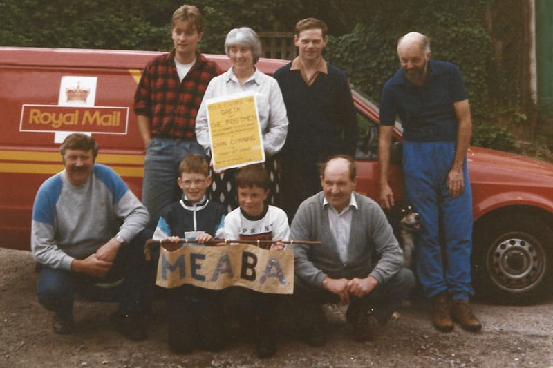 (Left) In 1994, Greta and the PO staff threw a retirement party for Bert Skene and David Mackay who had both been working as postmen in Ardgay office for over 20 years. The Burns Supper and dance were in Culrain hall and almost 120 people attended including staff from Dornoch and Lairg offices. (Right) Ian Smith joined in 1993 and left to start his own business in 2012. © Donald Brown / Greta MacDonald