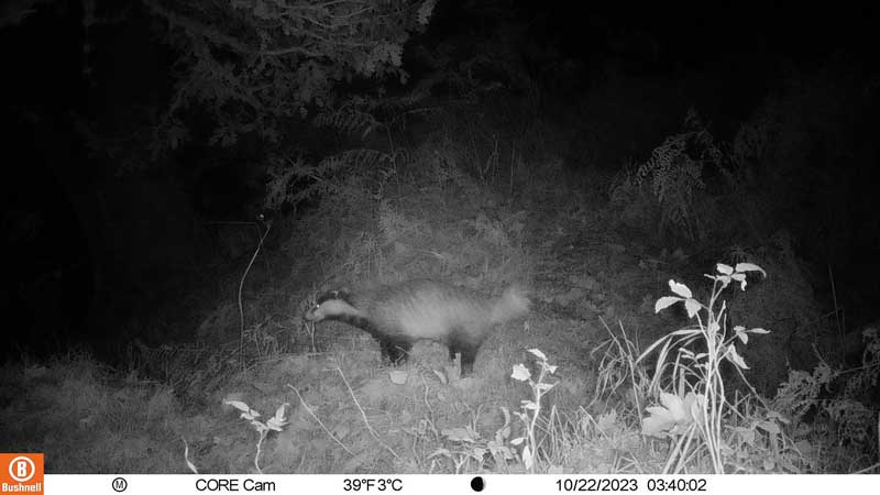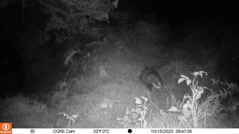 Badgers, with their distinctive black and white striped faces, are the largest UK member of the mustelid family, which includes otters and weasels. They are also our largest land predator but mostly they eat earthworms and can consume several hundred each in a night. They need a large range to find that many and up here in the Highlands their territories are believed to be around 150 hectares (370 acres or half a square mile).