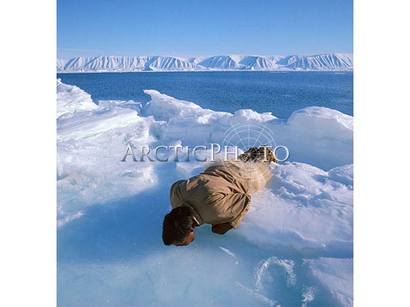 B: I have had a variety of favourite images over the years. I suppose if I had to choose one it would be the photograph of Kigutikak lying on the sea ice drinking from a melt pool. My choice is partly based on nostalgia. Kigutikak was the first Inuit hunter I travelled with in 1971 and this was also the first photograph I had published in the National Geographic magazine.