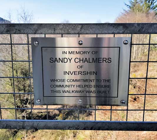 There are light switches providing light for cyclists and walkers when using the bridge at night, and a commemorative plaque in memory of local councillor Sandy Chalmers. You can continue your walk west with the nearby Carbisdale core path (7.76km long), or east with the Invershin Balblair core path (2.87km).