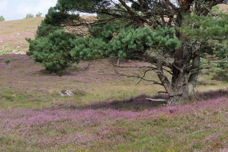 As summer starts to retreat into autumn, the hills and woods of the Highlands put on a spectacular show of mauves and purple. The heather is in flower.