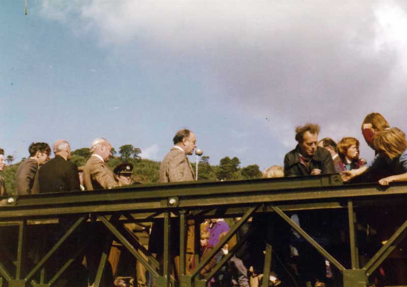 The bridge was opened the day after its completion with Colonel Sir Allan Gilmour cutting the tape. Following the Royal Engineers’ tradition on completion of such a project, the Squadron commander was picked up by his men and thrown, in his uniform, into the river.