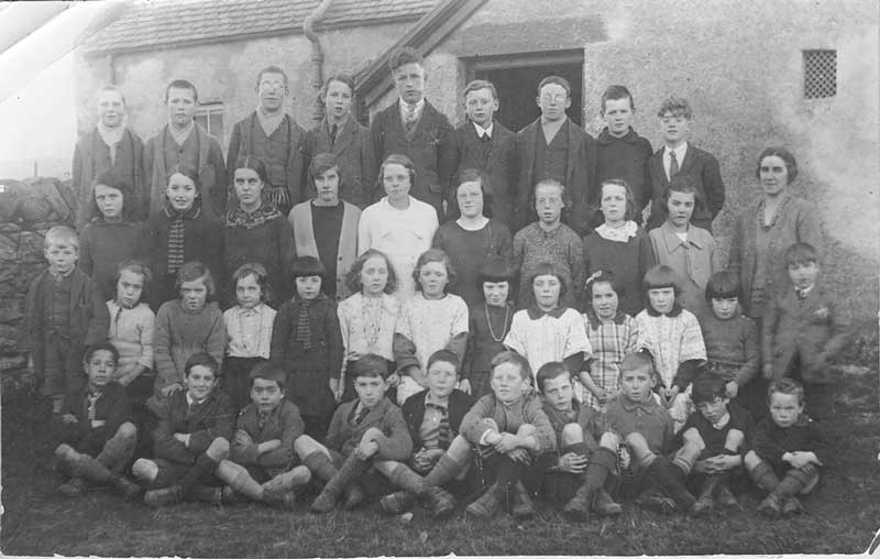 (Left) Rosehall School in early 1920s. The teacher is Mrs Falconer. (Right) Hannah’s House circa 1950, when Archie and Ellen Hopkins lived there. © Lily Byron
