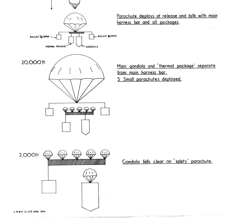 These balloons were enormous – up to 176 ft in height and 128 ft wide (the height of a 20 storey building) and the USAF believed they could evade the Soviet MiG fighters by rising to 55,000 ft. Once clear of Soviet territory the gondolas were designed to drop into the Pacific Ocean where VHF beacons would guide recovery squadrons to the precious payload.