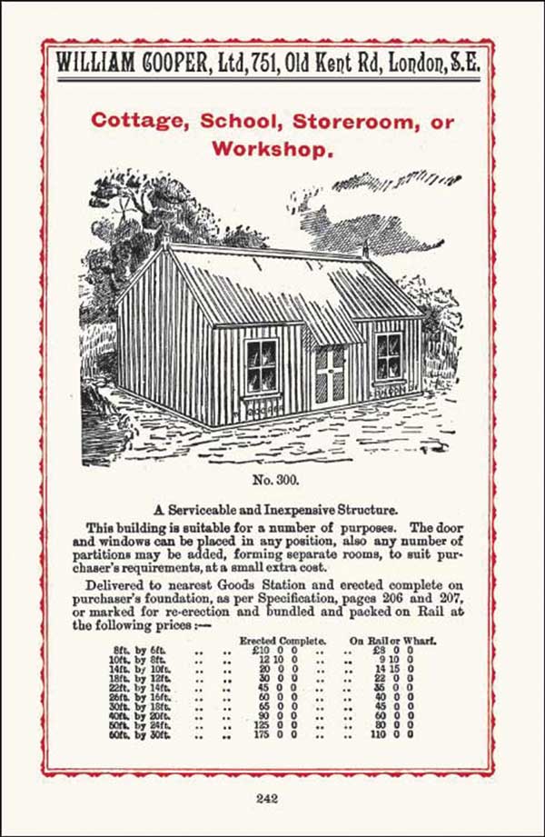 Since 1843, when the new galvanization process was first applied to corrugated roof sheeting, the manufacture of corrugated iron sheets and its potential to commercialise them as kit form buildings developed quickly. At the Great Exhibition of 1851 prefabricated cottages and warehouses on display impressed Prince Albert so much that he ordered one as a ballroom for Balmoral Castle.